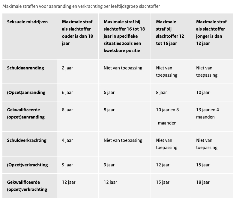 Maximale straffen voor aanranding en verkrachting